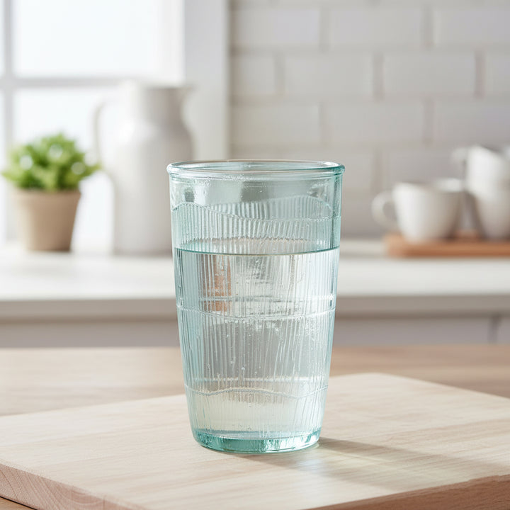 Bring style and sustainability to your table with the 1011 Eco Green Zenda Glass Tumbler – 300 cc. Featuring a unique vertical line texture and a soft green tint, this tumbler offers a refreshing modern look while being an eco-friendly alternative to single-use plastic cups. Its 300 cc capacity is perfect for everyday beverages including water, juices, or cocktails.
