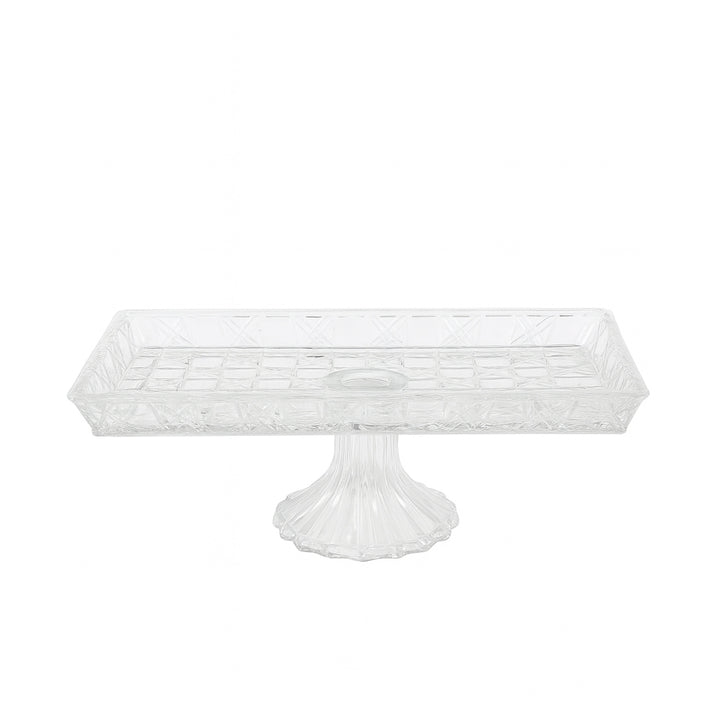1598-2 Glass Fruit Stand – 32cm (L) x 16cm (W) x 12cm (H) – Elegant Rectangular Pedestal Serving Tray