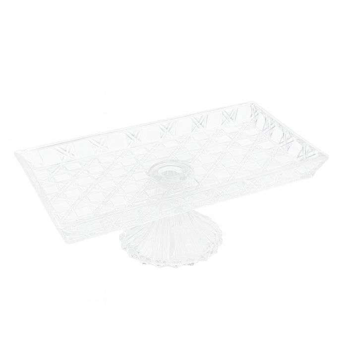 - Design: Rectangular Crystal-Cut Top with Elegant Pedestal Base