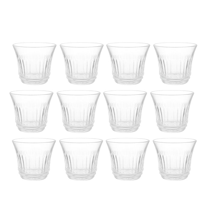 Serve Arabic coffee (Gahwa) with timeless style using the 5340256 SOLI40 Vertical Crystal-Style Cawa Cup Set. Featuring a vertical ribbed pattern that gives a subtle, elegant look, these cups are designed to reflect light beautifully and enhance your coffee experience. This 12-piece set is perfect for everyday hospitality or special gatherings.