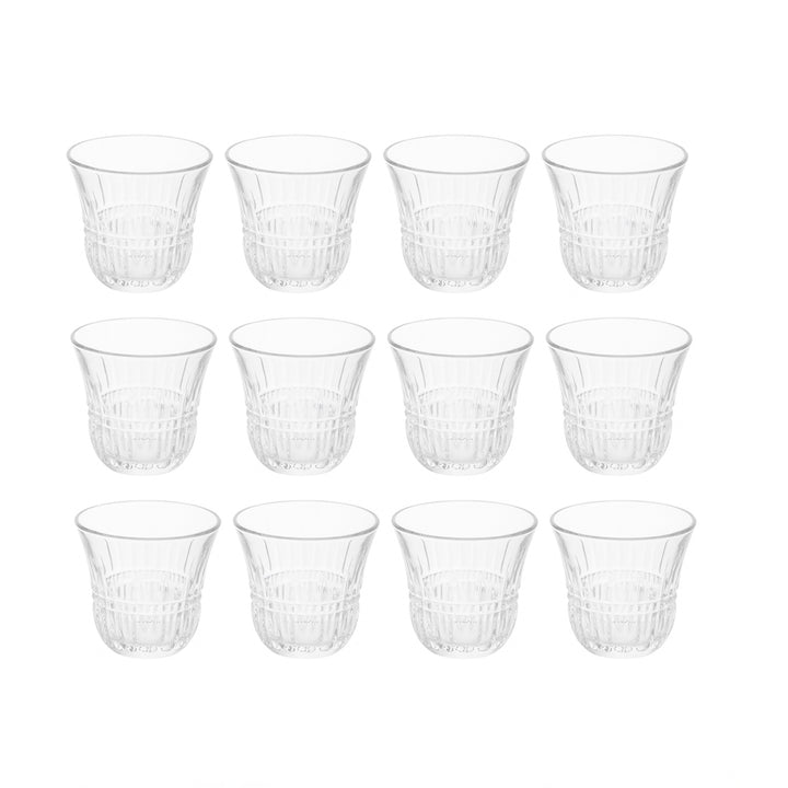 Serve Arabic coffee with sophistication using the 5340268 SOLI41 Textured Crystal-Style Cawa Cup Set. Featuring a refined textured design, these cups create a beautiful play of light while adding a touch of luxury to every gathering. Perfect for daily use or formal occasions, this 12-piece set offers the ideal balance of elegance and practicality.