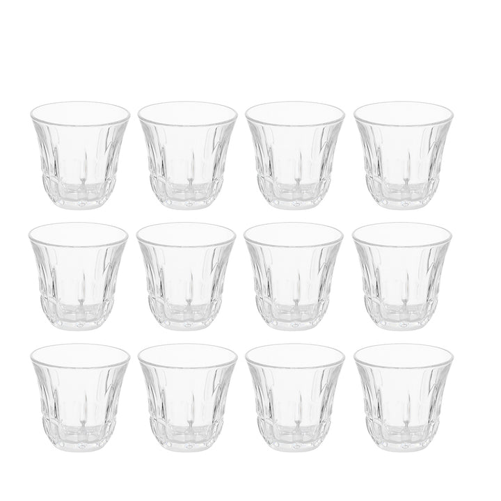 Bring timeless style to your coffee table with the 5340277 SOLI42 Fluted Crystal-Style Cawa Cup Set. Each cup features a beautifully fluted pattern that enhances the look of your serving setup while reflecting light for a subtle sparkle. This 12-piece set is ideal for serving Arabic coffee (Gahwa) or espresso, whether for everyday use or formal gatherings.