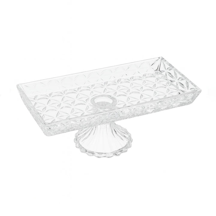 - Design: Rectangular Tray with Diamond-Cut Detailing and Sturdy Pedestal