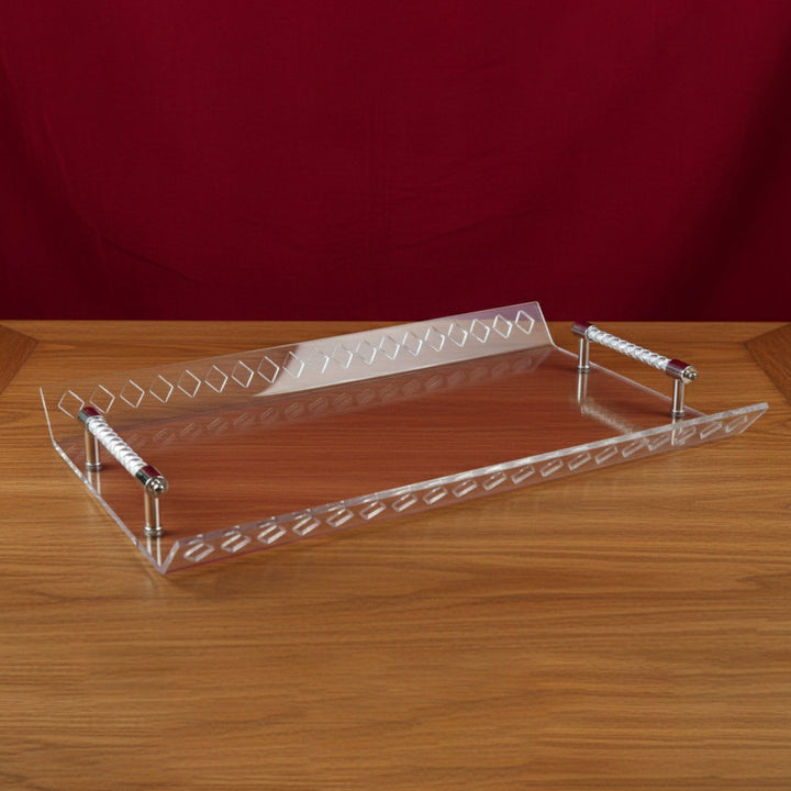 صينية تقديم أكريليك AT-31045 - 45 سم (عرض) × 30 سم (طول) - تصميم شفاف بمقابض بيضاء