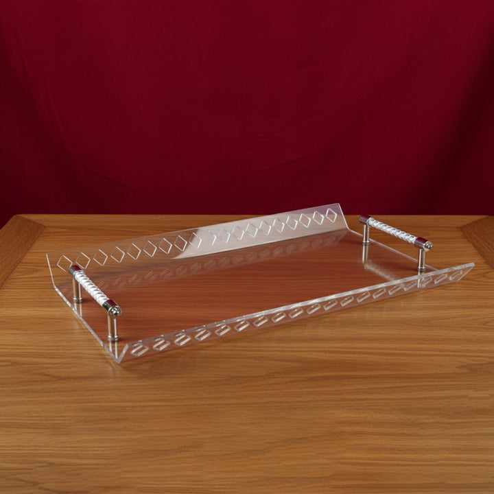 صينية تقديم أكريليك AT-31046 - 40 سم (عرض) × 27 سم (طول) - تصميم شفاف بمقابض بيضاء