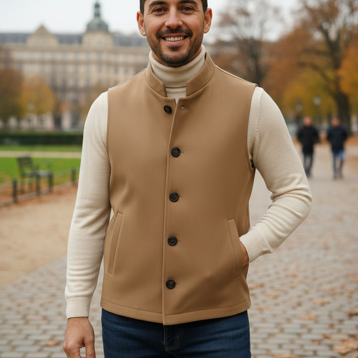 The BK13 Men’s Vest (Sadariya) combines comfort, warmth, and elegance in one timeless piece. Crafted from a premium polyester blend in a classic camel brown tone, it features a soft quilted interior with fur lining — offering both insulation and luxury. Ideal for layering over shirts or traditional wear, this sleeveless jacket enhances your outfit while keeping you cozy during cooler days.