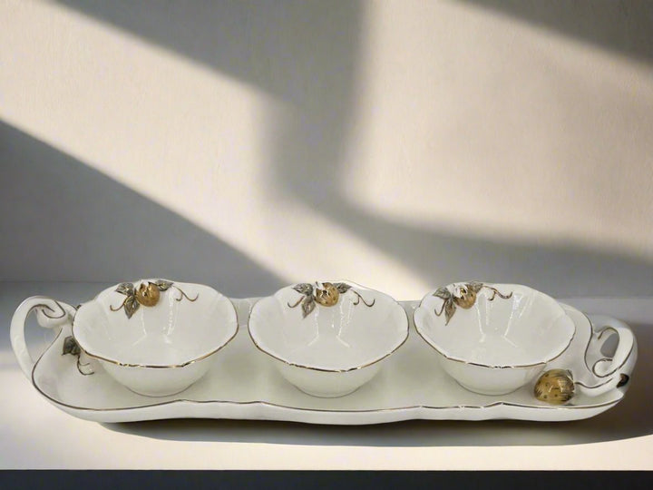 Brd-396 وعاء سيراميك للوجبات الخفيفة مكون من 3 قطع مع صينية