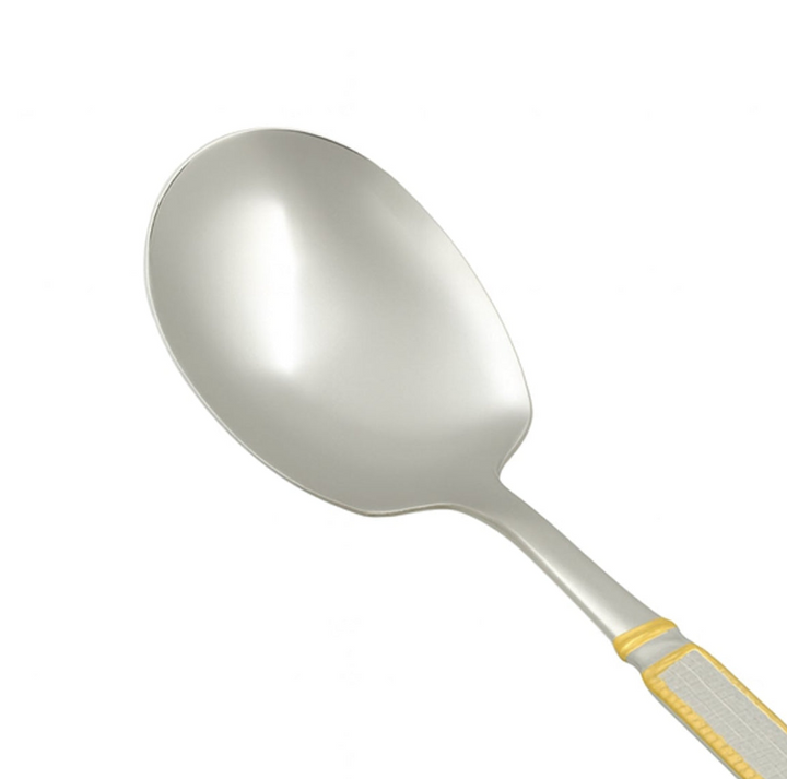 CUT0010297 ملعقة أرز مسطحة من الفولاذ المقاوم للصدأ - صغيرة - فضية بمقبض ذهبي