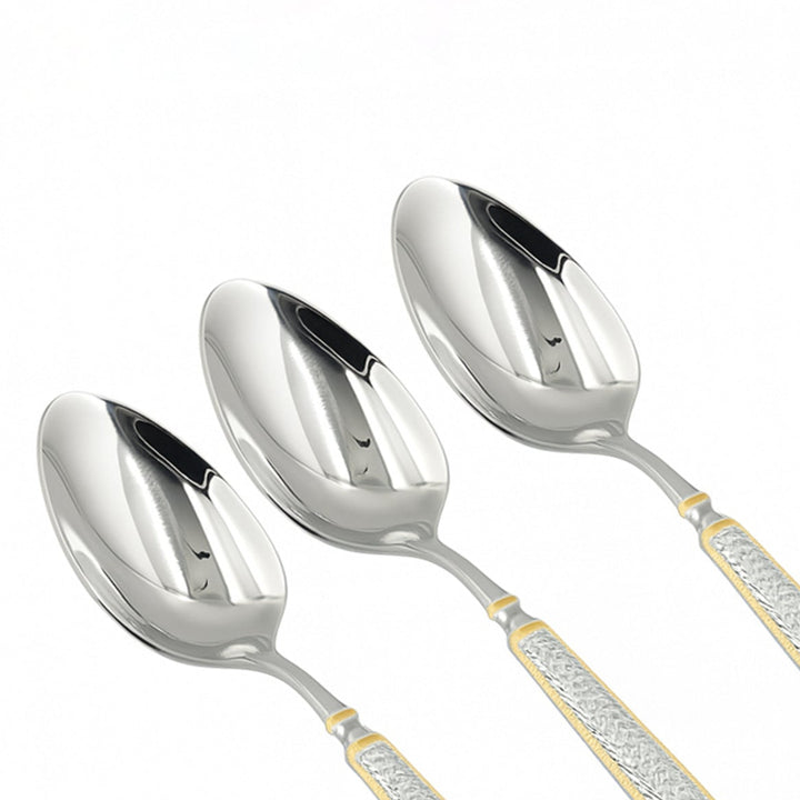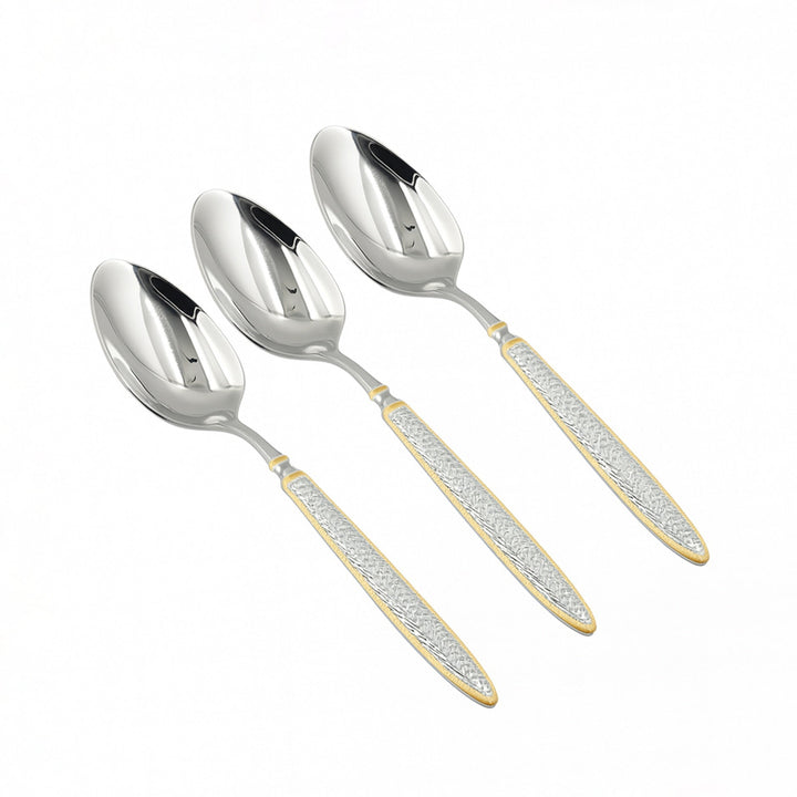 CUT0010457 طقم ملاعق عشاء من الفولاذ المقاوم للصدأ - 3 قطع - ارتفاع 20 سم - فضي مع مقابض ذهبية