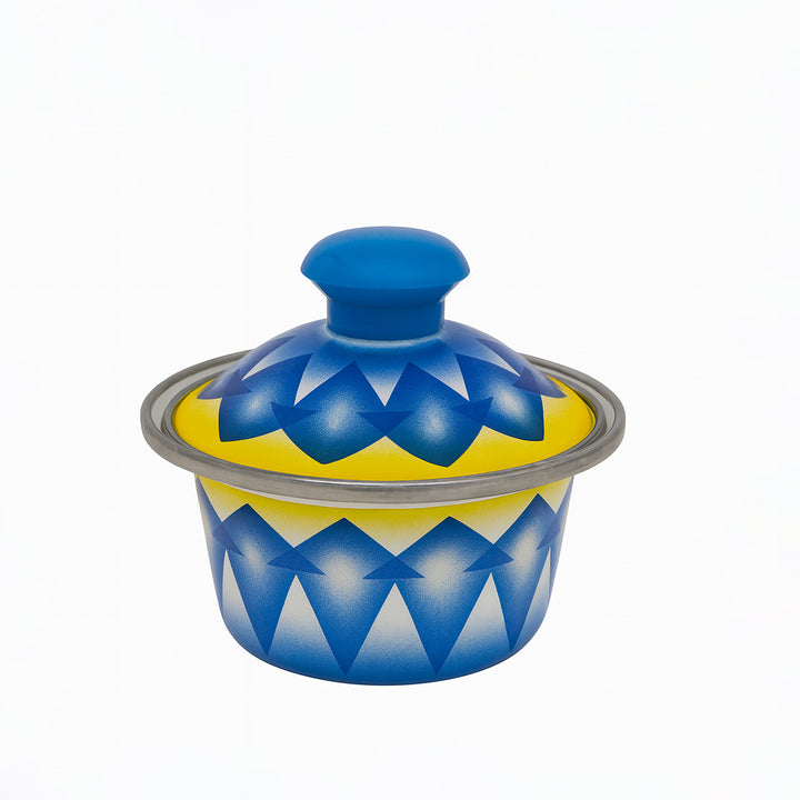 وعاء تقديم DBF8 المصنوع من المينا مع غطاء - 8 سم - بتصميم هندسي أزرق وأصفر، يُعد إضافة أنيقة وعملية لمجموعة أدوات التقديم الخاصة بك. مصنوع من فولاذ عالي الجودة مطلي بالمينا، يتميز هذا الوعاء الصغير بنمط هندسي متدرج جريء باللونين الأزرق والأصفر، يضفي لمسة من الألوان الزاهية واللمسة العصرية على مائدتك. مثالي لتقديم الصلصات والمكسرات والصلصات أو الوجبات الخفيفة الصغيرة، فهو يجمع بين التصميم الفني والعملية اليومية.
