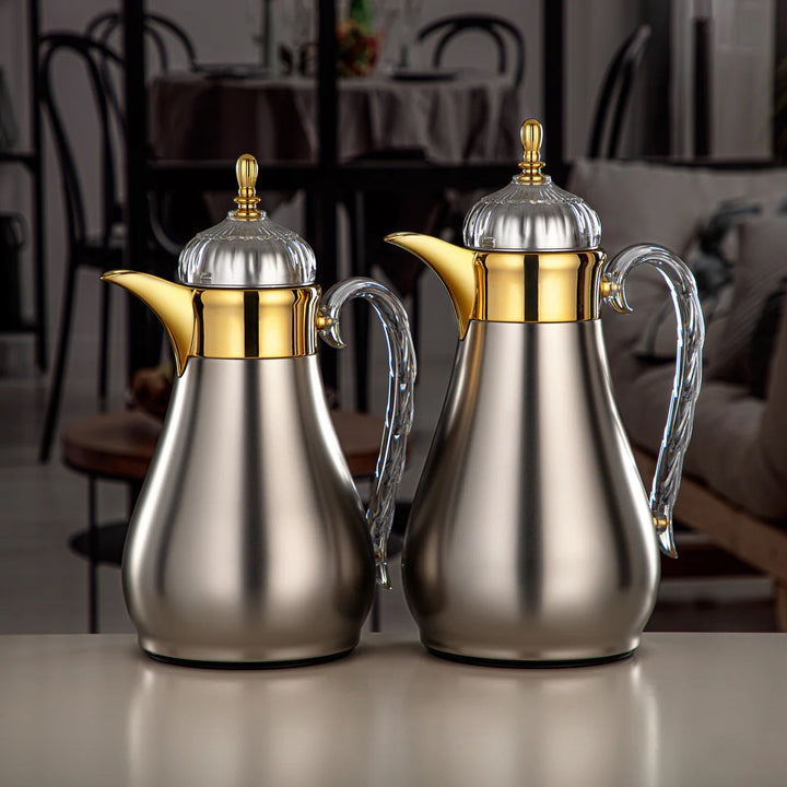 The FG810 Vacuum Flask Set in Matte Silver and Gold offers a stylish blend of functionality and elegance. This 2-piece set includes 0.7L and 1L vacuum-insulated flasks designed to keep drinks hot or cold for extended hours—perfect for travel, work, or everyday hydration.