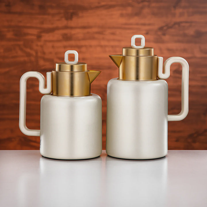 The FG815 Vacuum Flask Set is the perfect blend of style and functionality. Designed in a refined matt pearl white finish with matt gold accents, it brings elegance to your serving table while ensuring excellent heat retention. Crafted with a durable metal body and glass liner, this set keeps your beverages hot and fresh, making it ideal for both daily use and special gatherings.