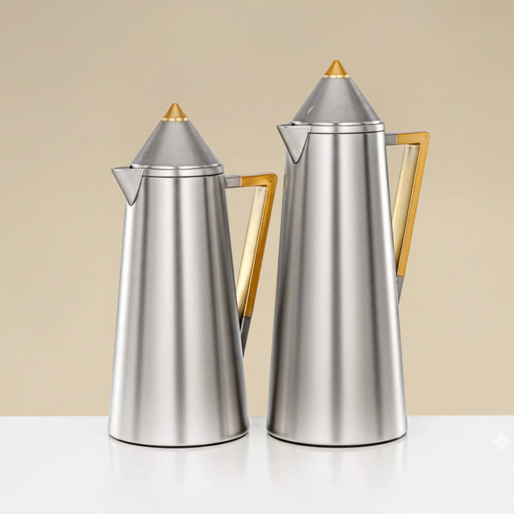 FG818 Vacuum Flask – 2-Piece Set – 1 L & 0.7 L – Matt Nickel with Gold Accents