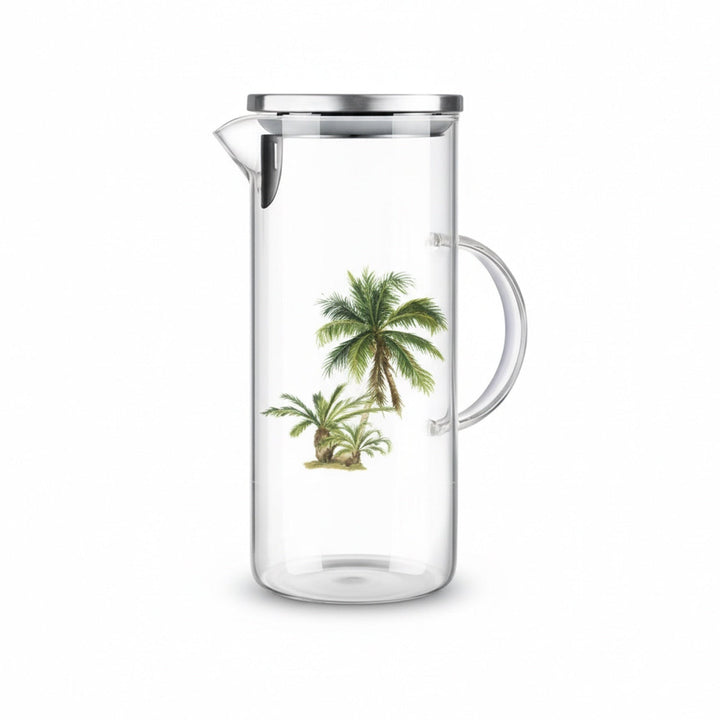 إبريق GLA27498 الزجاجي - سعة 1500 مل - مصنوع من زجاج البوروسيليكات المقاوم للحرارة مع غطاء من الفولاذ المقاوم للصدأ، مصمم ليجمع بين الأناقة والمتانة. مصنوع من زجاج البوروسيليكات عالي الجودة، يتحمل المشروبات الساخنة والباردة بأمان، مما يجعله مثاليًا للشاي والعصير والقهوة أو الماء المنقوع. يضمن الغطاء الأنيق المصنوع من الفولاذ المقاوم للصدأ سكبًا سلسًا ويحافظ على نضارة مشروباتك، بينما يضفي تصميم شجرة النخيل الاستوائية لمسة منعشة وديكورية على طاولتك.