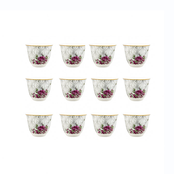 GP-94 Cawa Cup Set – 12 Pieces – 80ml – Elegant Floral Design