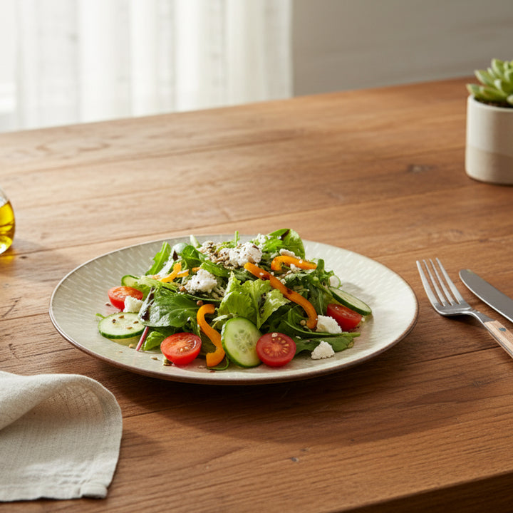 HL707-2 Porcelain Salad Plate – 8.5" Round Plate in Textured Glossy Beige Finish