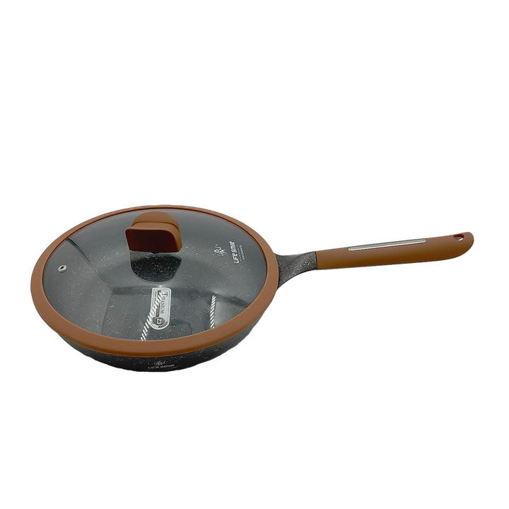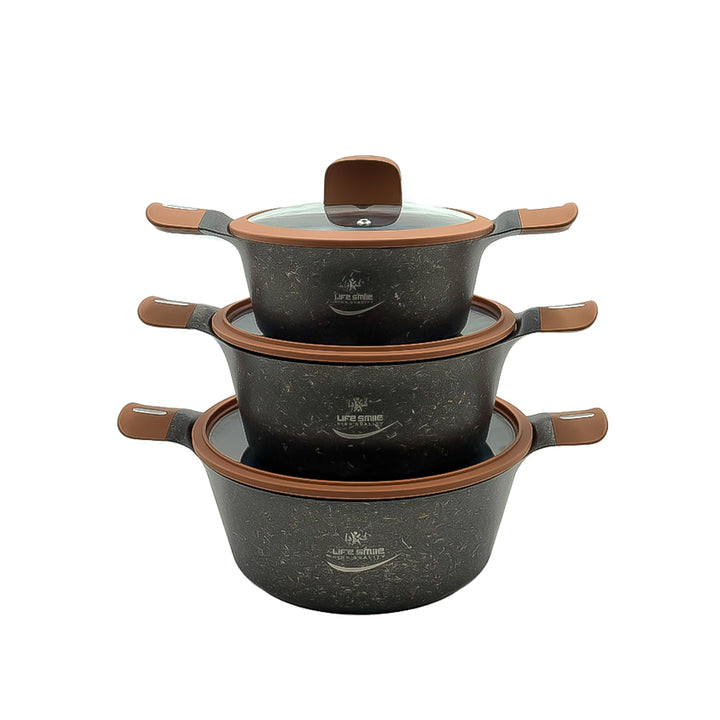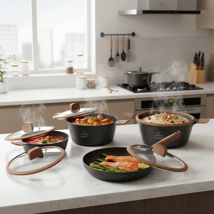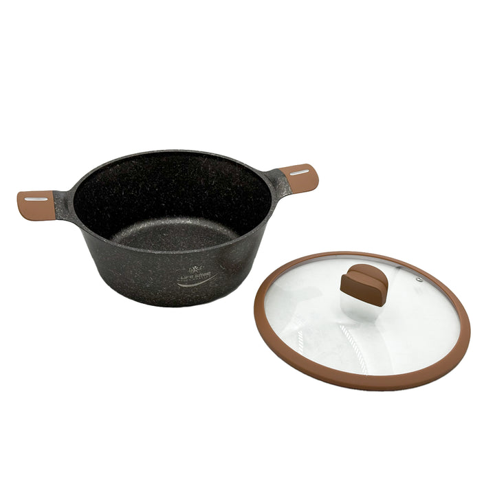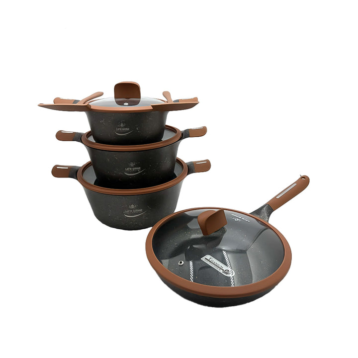 مجموعة أواني طهي LIFEP14-10T2 - 10 قطع من أواني الطهي الجرانيتية غير اللاصقة بأغطية زجاجية - بني غامق