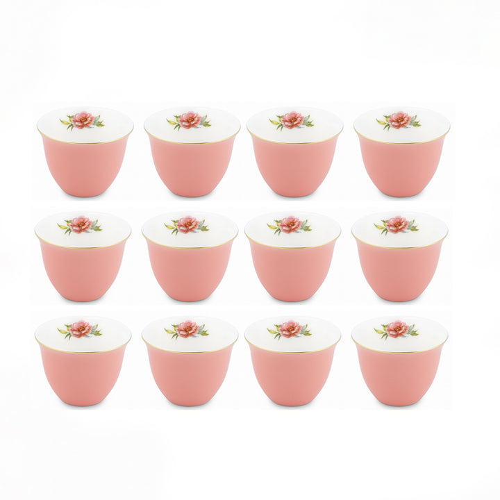 MA-20 Cawa Cup Set – 12-Piece – Solid Pink with Gold Rim