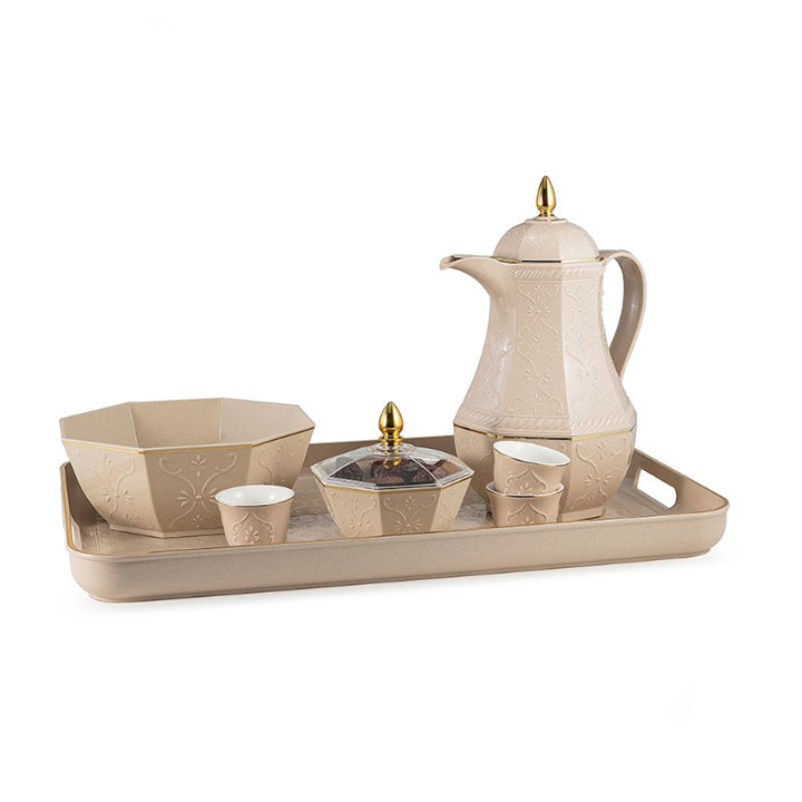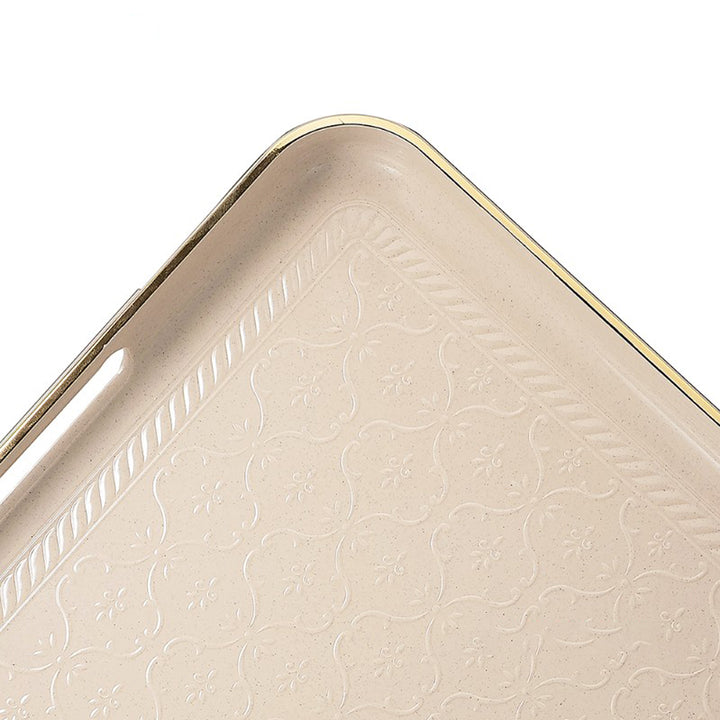 The MR-624 Rose Serving Tray – Brown Beige Finish with Golden Edge brings elegance and functionality together in one refined design. Crafted from high-quality, durable plastic, it features a smooth surface with a subtle floral texture, highlighted by a golden rim that adds sophistication to your serving experience. Ideal for serving tea, coffee, snacks, or desserts — this tray enhances every presentation, whether for home, office, or gatherings.
