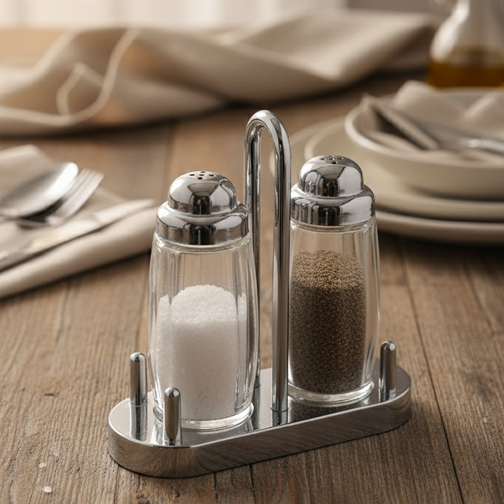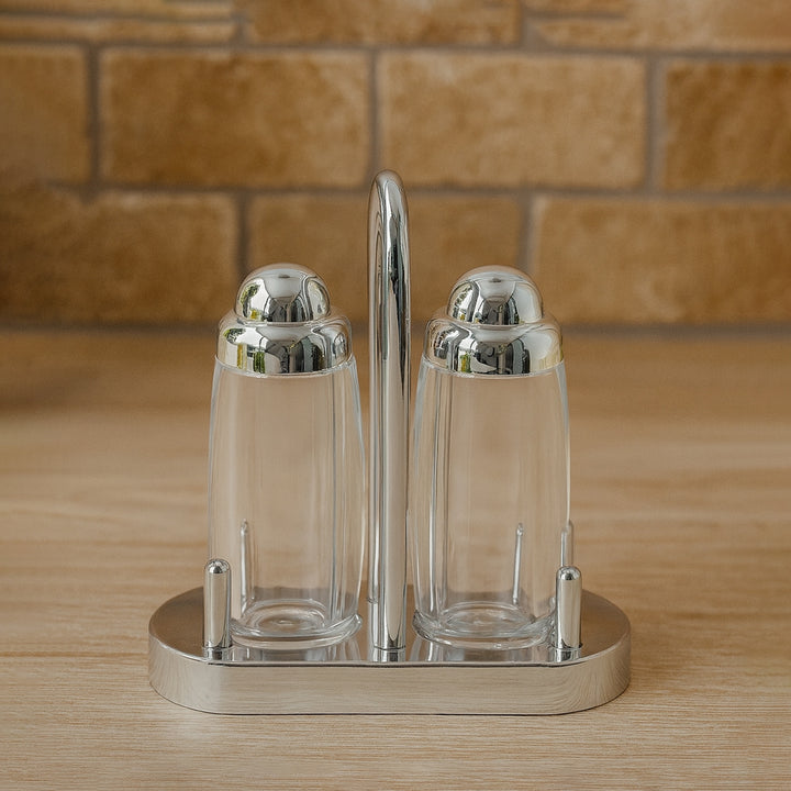 هزازة الملح والفلفل الأكريليكية MRK77009 مع حامل تجمع بين الأناقة والعملية. تتميز بهيكل أكريليك شفاف للغاية بلمسة نهائية فضية راقية، مما يضفي لمسة عصرية أنيقة على أي طاولة طعام أو مطبخ. مصممة لسهولة الاستخدام وإعادة التعبئة، مما يحافظ على توابلك المفضلة في متناول يدك مع الحفاظ على سطح طاولة نظيف ومنظم.