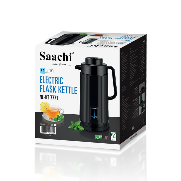 غلاية ساشي الكهربائية NL-KT-7771-BK - سعة 3.0 لتر - 1500 واط - سوداء اللون، تجمع بين العملية العصرية والتصميم المتين، مما يجعلها مثالية للمنازل والمكاتب والتجمعات. بفضل تقنية الشريحة الذكية والعزل التلقائي، تضمن هذه الغلاية الكهربائية المصنوعة من الفولاذ المقاوم للصدأ غليانًا فعالًا واحتفاظًا بالحرارة يدوم حتى 10 ساعات. تصميمها اللاسلكي وقاعدتها الدوارة بزاوية 360 درجة يوفران الراحة وسهولة الاستخدام يوميًا.