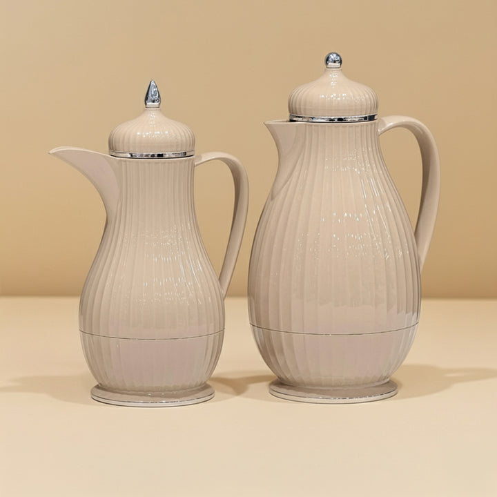 Elevate your tea and coffee moments with the Rotd Vacuum Flask – 2-Piece Set – 0.35 L & 0.6 L. This stylish and practical set is designed to keep your drinks at the ideal temperature for hours. With its elegant fluted body, metallic accents, and ergonomic handle, it makes every serving a touch of luxury – perfect for home gatherings, office use, or gifting.