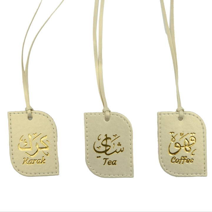 - Set Includes: 3 tags – Karak, Tea, Coffee