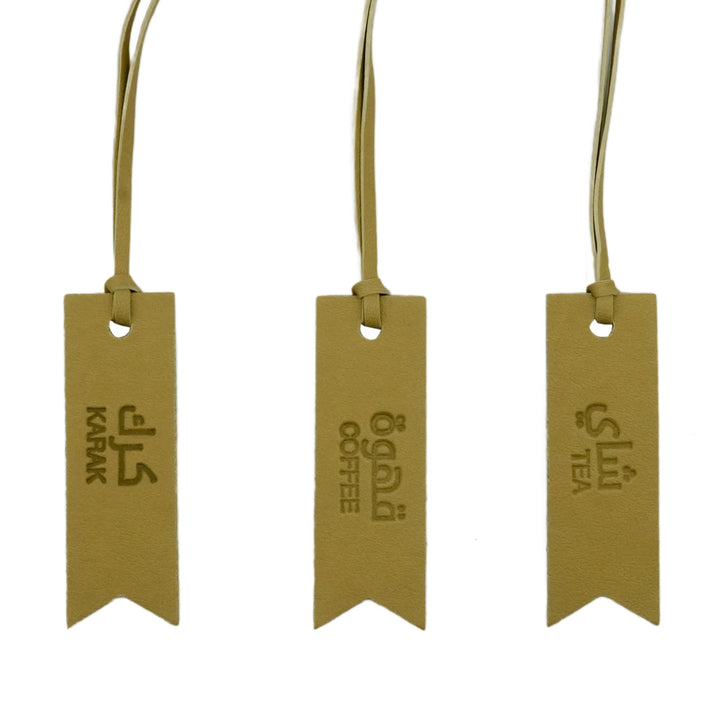 - Set Includes: 3 tags – Karak, Tea, Coffee