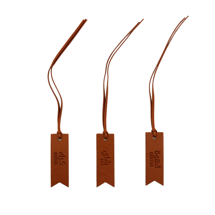 Bring style and convenience to your tea and coffee service with the S-SE1022 Selsela Leather Flask Tag Set – 3-Piece – Brown. This set includes leather tags for Karak, Tea, and Coffee, crafted in rich brown leather with embossed Arabic and English text. Perfect for homes, offices, and gatherings, these tags help guests easily identify beverages while adding a classy, coordinated look to your serving setup.