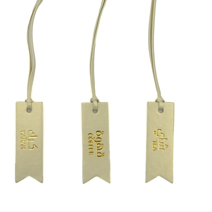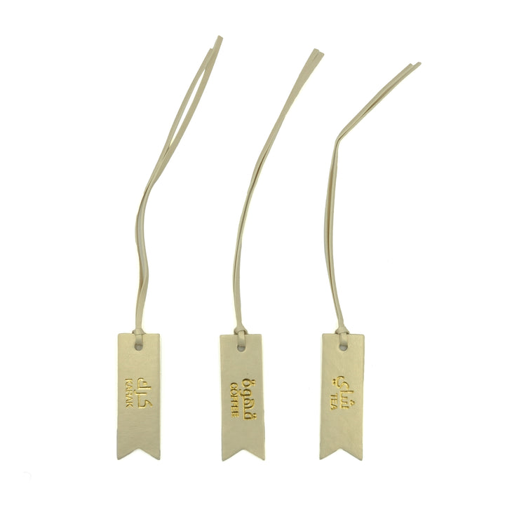 - Set Includes: 3 tags – Karak, Tea, Coffee