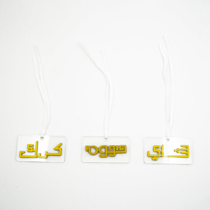 - Tags Included: Karak – Tea – Coffee (Arabic text only)