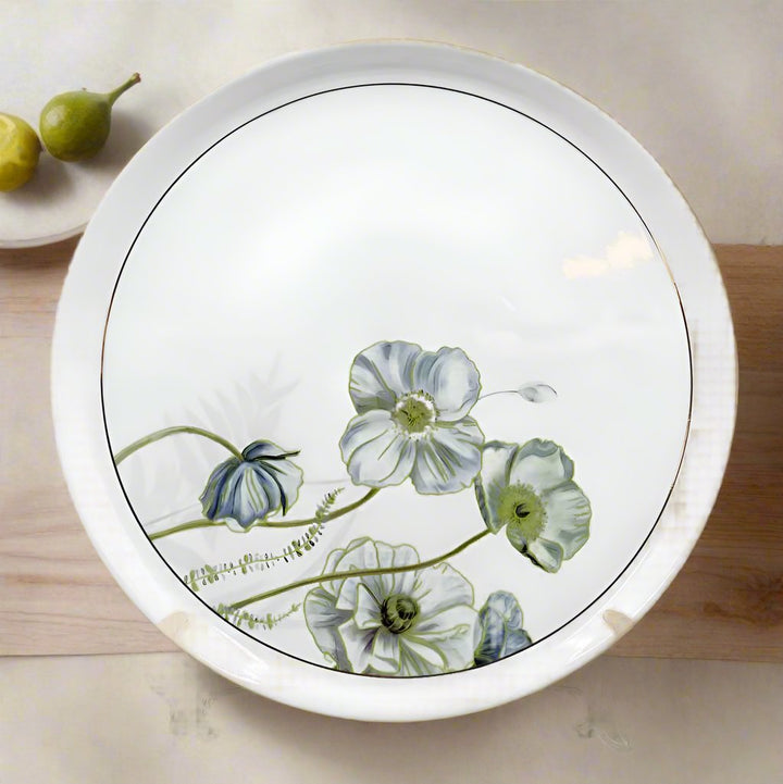 طبق بورسلين SC3444 مقاس 12.6 بوصة - أبيض مع تصميم زهرة خضراء
