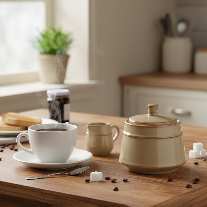 يُضفي إبريق السكر SC3691 المصنوع من البورسلين لمسةً كلاسيكيةً على لحظات الشاي والقهوة. مصنوع من البورسلين الفاخر بلمسة نهائية ناعمة بلون بيج لامع، ويوازن بشكل مثالي بين العملية والتصميم الأنيق. سعته البالغة 360 مل تجعله مثاليًا لتخزين السكر والعسل والتوابل الصغيرة، بينما يحافظ غطاؤه المحكم على نضارة الطعام ويُحسّن من مظهره.