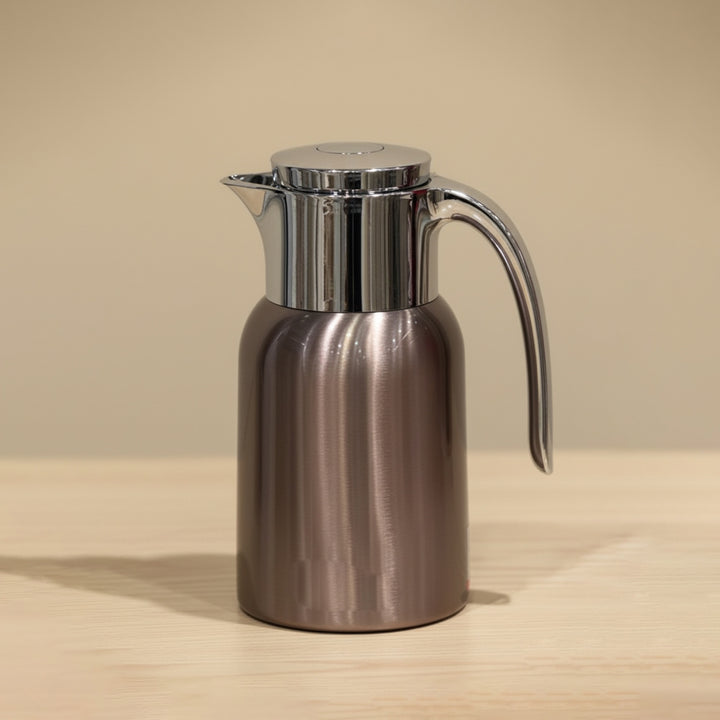 ترمس TSC12Q الفولاذي المفرغ من الهواء - سعة لتر واحد، بلمسة نهائية نحاسية معدنية، يجمع بين العملية العصرية والدفء الكلاسيكي. صُمم للاستخدام المنزلي والمكتبي، ويتميز بعزل مزدوج من الفولاذ المقاوم للصدأ يحافظ على سخونة المشروبات أو برودة بعضها لساعات. يضفي لونه النحاسي الأنيق لمسة من الفخامة، مما يجعله مثاليًا لتقديم القهوة أو الشاي أو غيرها من المشروبات بأناقة.