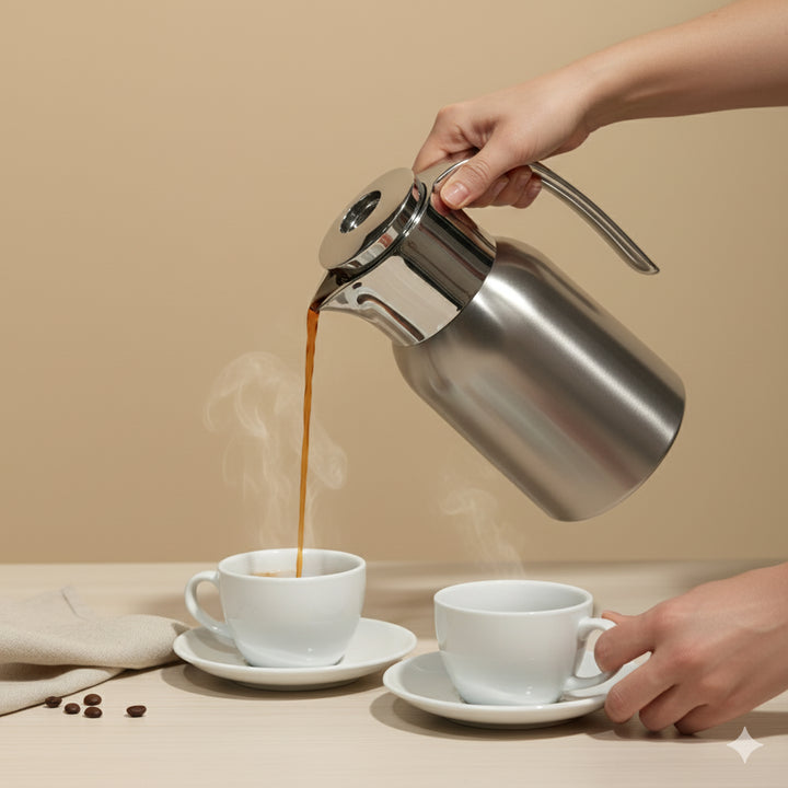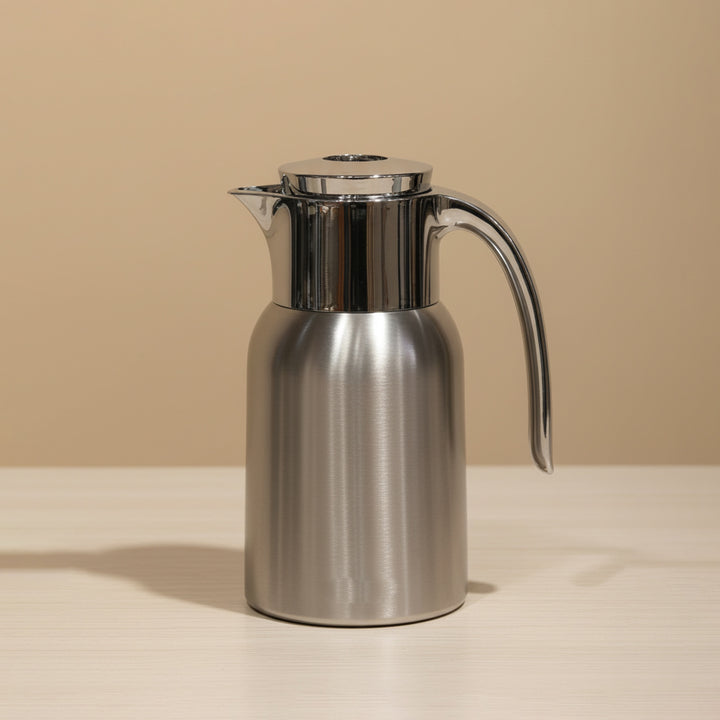 ترمس TSC12Q الفولاذي المفرغ من الهواء - سعة لتر واحد، بلمسة نهائية فضية مطفية عصرية، مصمم ليجمع بين الأناقة والأداء. يتميز بعزل مزدوج فاخر من الفولاذ المقاوم للصدأ، مما يحافظ على المشروبات ساخنة أو باردة لساعات طويلة، مما يجعله مثاليًا لتقديم الشاي أو القهوة أو المشروبات الباردة. يضفي لونه الفضي المطفي البسيط لمسة من الرقي على أي طاولة أو مساحة عمل.