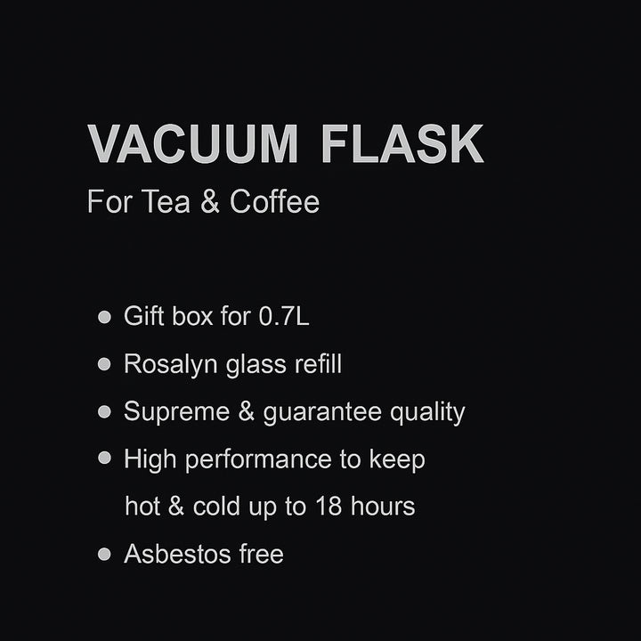 Keep your drinks at the perfect temperature with the VOP-0700 Vacuum Flask – 0.7L – Matt Chrome Finish. Its smooth, matte chrome exterior brings a contemporary, minimalist look, while the Rosalyn glass refill ensures long-lasting heat or cold retention. Perfect for family use or small gatherings.