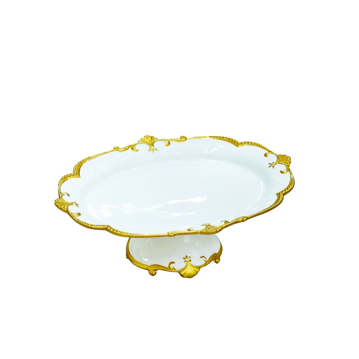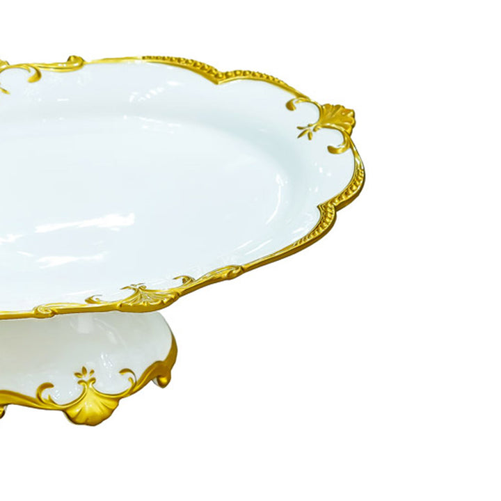 طبق الوجبات الخفيفة الخزفي VS-044 مع حامل وخط ذهبي هو قطعة تقديم راقية وعملية. مصنوع من سيراميك عالي الجودة مع خط ذهبي أنيق وحامل قوي، وهو مثالي لتقديم الوجبات الخفيفة أو الحلويات بأناقة، مثالي لأي مناسبة.