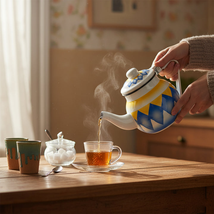 - تصميم أنيق وملون: يضيف الدفء والسحر إلى مطبخك أو طاولة الشاي.