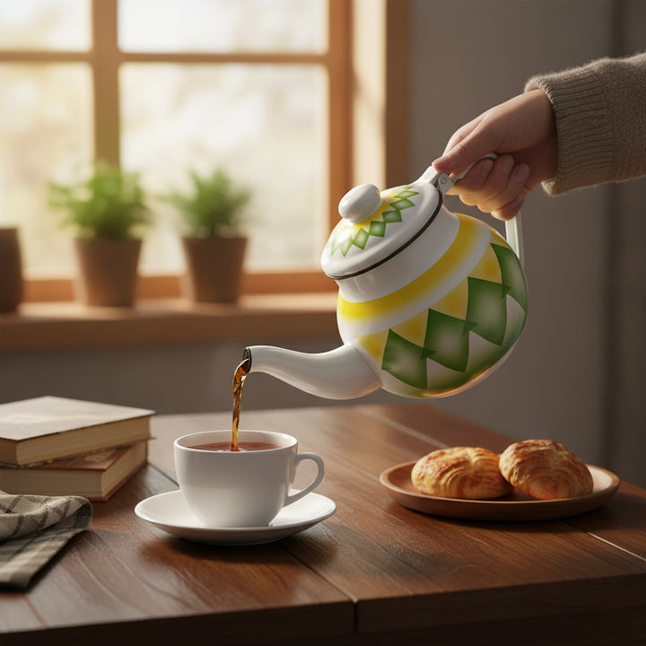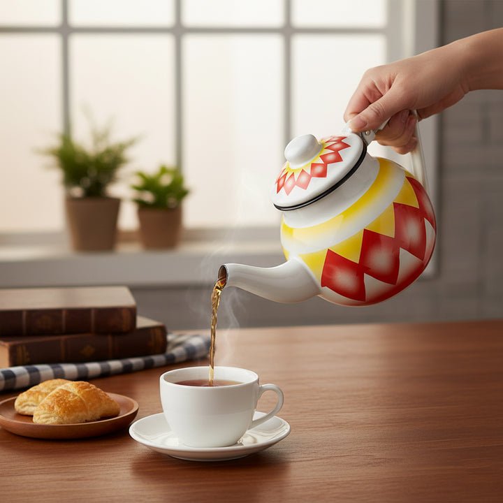 غلاية WT-A76-1.0LD المطلية بالمينا - سعة 1.0 لتر - تصميم كلاسيكي مع طلاء مينا متين، مزيج مثالي بين الأناقة التقليدية والوظائف العصرية. صُممت هذه الغلاية الصغيرة للاستخدام اليومي، وهي مصنوعة من فولاذ عالي الجودة مطلي بالمينا، مما يضمن المتانة وتوزيعًا متساويًا للحرارة ولمعانًا يدوم طويلًا. يضفي تصميمها النابض بالحياة لمسة من الألوان والطابع المميز على مطبخك.