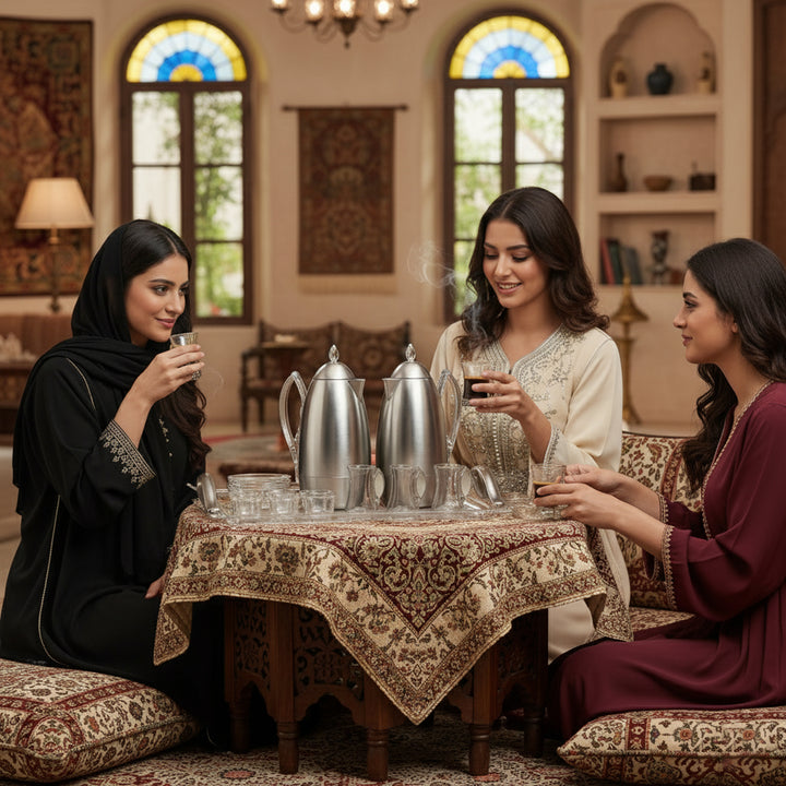- 6 Glass Cawa Cups – Ideal for serving Arabic coffee or espresso