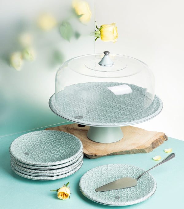 ATHEER Cake Serving Set Blue Silver - ET2494Add a vibrant touch to your dessert table with this beautiful cake serving set in blue and silver. Featuring intricate Arabic calligraphy, it’s...