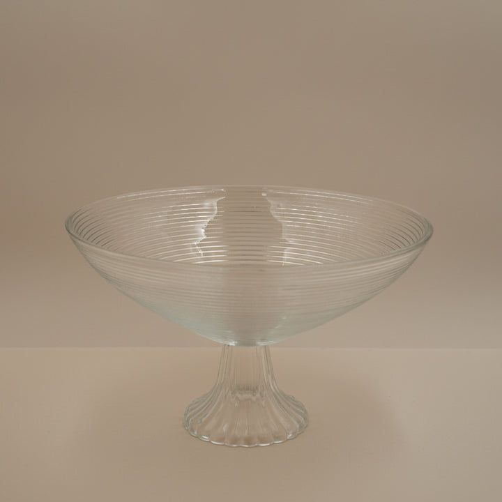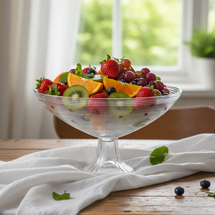 The 1130-2 Glass Fruit Stand is a timeless centerpiece designed to elevate your dining or serving setup. Crafted from high-quality clear glass, it features a ribbed texture and a wide 30cm diameter bowl that beautifully showcases fruits, desserts, or decorative arrangements. The sturdy pedestal base provides stability while adding a touch of elegance to any table.
