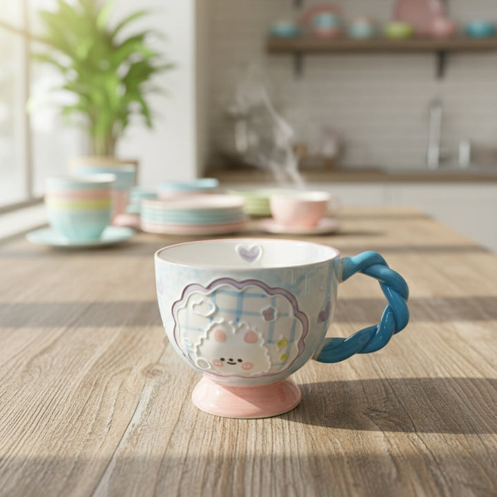 Charming Ceramic Cup with Cartoon Bear Design & Twisted Handle