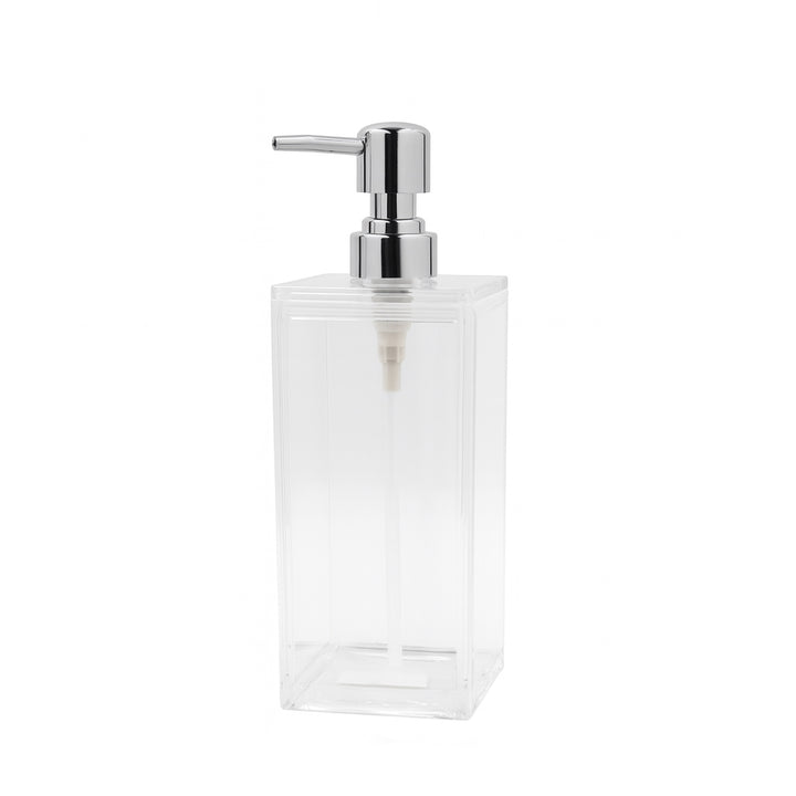 The 2425 Acrylic Soap Dispenser offers a sleek and practical solution for your bathroom or kitchen. With its tall, clear rectangular design and a polished chrome pump, it combines modern elegance with everyday functionality. The transparent body ensures easy monitoring of liquid levels, while the durable acrylic construction guarantees long-lasting use.