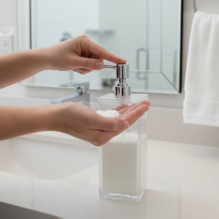 - Durable Construction: Strong acrylic with a sturdy chrome pump for long-term use.