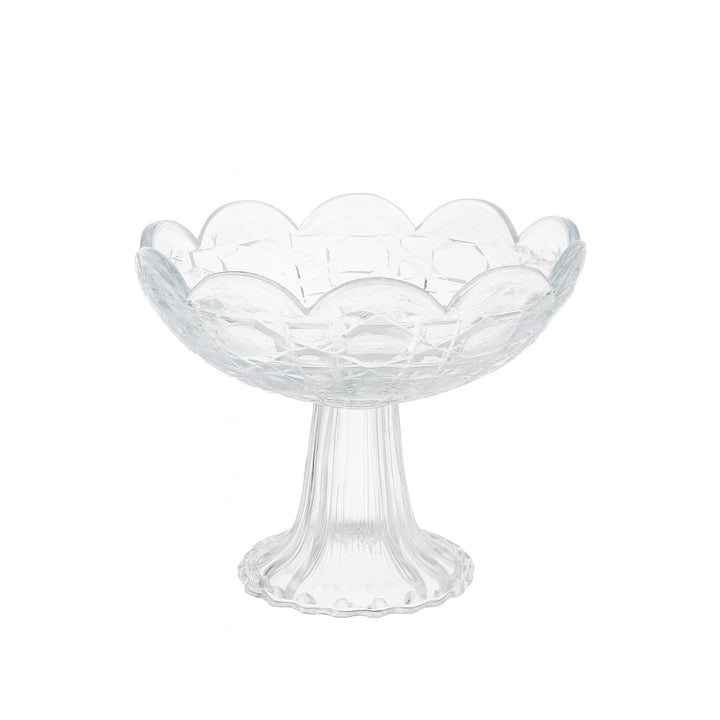 Add a touch of elegance to your table with the 2501-4 Glass Fruit Stand – 16cm (D) x 10cm (H) Elegant Textured Pedestal Dessert & Fruit Bowl. Featuring a stunning crackle-texture pattern and scalloped edges, this pedestal bowl is perfect for elevating fruits, desserts, or decorative arrangements.