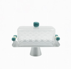 The 301-59 Cake Tray with Cover is designed to showcase your cakes, pastries, and desserts in style. Featuring a sleek rectangular pedestal base and a clear dome cover with a modern knob, this tray keeps your treats fresh while adding an elegant touch to your table. Perfect for tea parties, birthdays, or everyday countertop display.