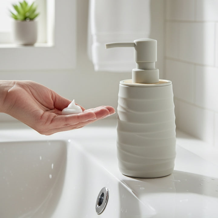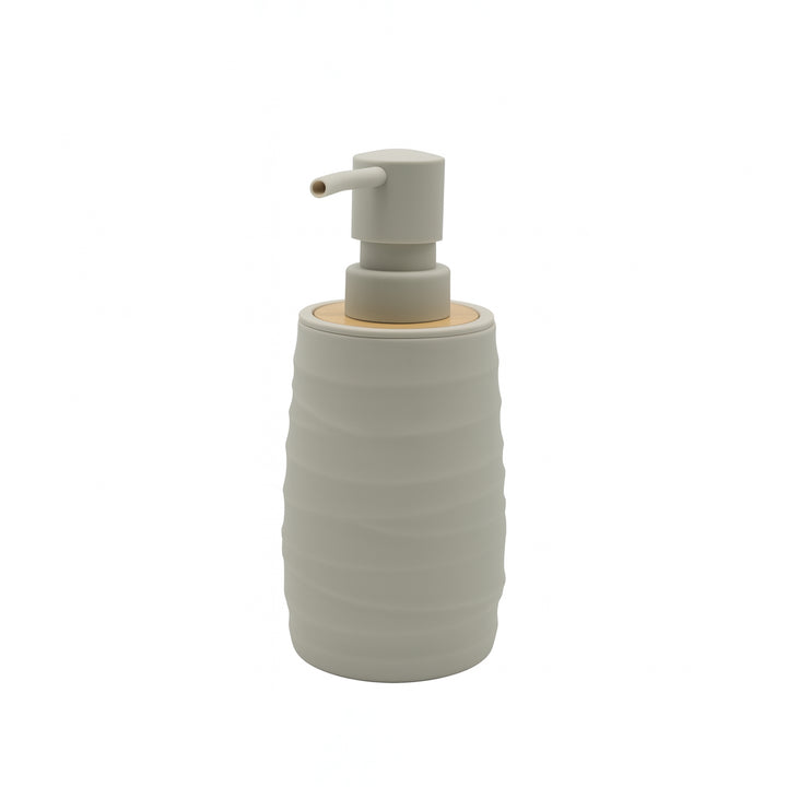 548-10 Soap Liquid Dispenser – Beige with Wooden Accent – Textured Wave Design
