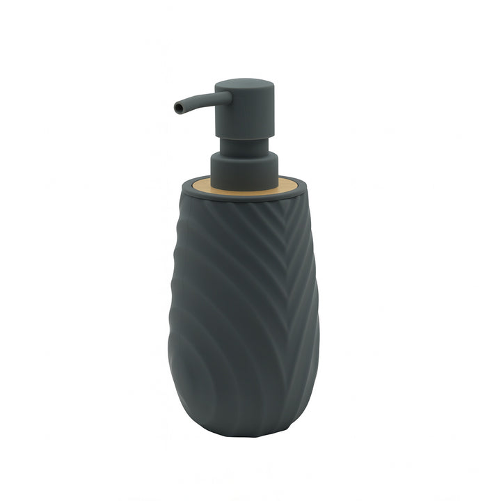 548-8 Soap Liquid Dispenser – Dark Grey with Wooden Accent – Leaf Texture Design