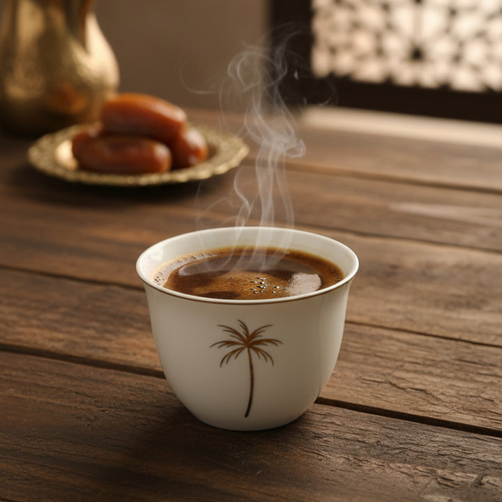 The 5857G Cawa Cup 12-Piece Set captures the essence of Arabian hospitality and timeless sophistication. Each cup is beautifully crafted from high-quality ceramic and delicately adorned with a golden palm motif — a symbol of warmth, generosity, and heritage. The fine gold rim adds a luxurious finishing touch, creating a stunning balance between simplicity and opulence.